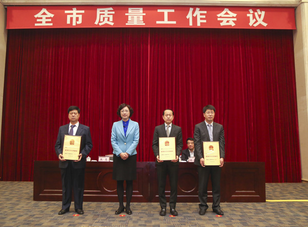 2016年3月30日,全市質(zhì)量工作會議在東山賓館召開。會上,對榮獲2015年度威海市市長質(zhì)量獎的3家企業(yè)及2名個人進行了表彰。聯(lián)橋集團榜上有名,喜獲威海市質(zhì)量領(lǐng)域最高獎,集團公司董事長慕镕鍵參加了頒獎儀式,接受了張惠市長親自頒發(fā)的榮譽獎牌。