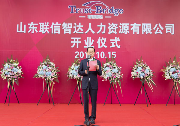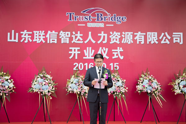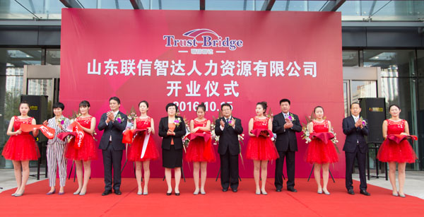 2016年10月15日上午8:30,由威海聯(lián)橋集團與日本株式會社Trust-Tech共同出資成立的山東省首家中外合資人力資源公司—山東聯(lián)信智達(dá)人力資源有限公司開業(yè)儀式隆重舉行。人社部勞動爭議研究室主任李天國、威海市人社局局長王子明、威海市商務(wù)局副局長劉秀景,高區(qū)黨工委副書記、管委常務(wù)副主任喬軍,聯(lián)橋集團董事長慕镕鍵、日本株式會社Trust-Tech社長西田穰等領(lǐng)導(dǎo)以及聯(lián)橋集團員工、事業(yè)合作伙伴、媒體記者等共計200余人參加了開業(yè)儀式。山東聯(lián)信智達(dá)人力資源有限公司總經(jīng)理梁瀟尹主持開業(yè)儀式。