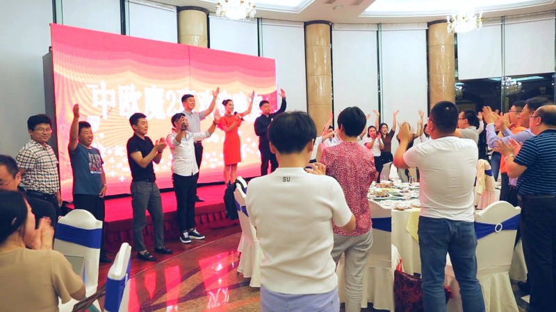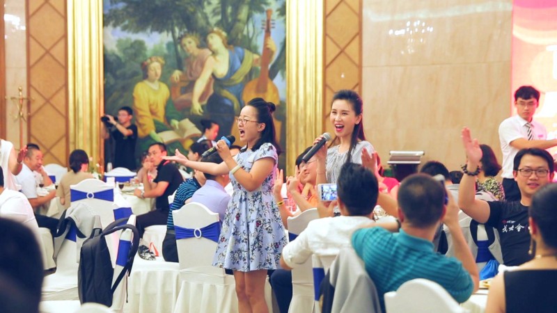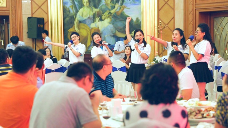 如果說(shuō)下午的座談讓大家受益匪淺,那么晚上的接待晚宴,則讓所有學(xué)員感到興奮不已和深深震撼。在慕衛(wèi)波董事幽默風(fēng)趣的祝酒詞后,在杯盞交換暖意融融的席間,隨著悠揚(yáng)的音樂(lè)響起,深情的《老同學(xué)》歌聲從身邊飄來(lái),拉開(kāi)了由聯(lián)橋藍(lán)色暢想合唱團(tuán)快閃表演的帷幕。《童年》、《哎呦媽媽》、《朋友》等經(jīng)典歌曲,帶給現(xiàn)場(chǎng)學(xué)員一次又一次的驚喜,《我的太陽(yáng)》則將整場(chǎng)晚宴推向了高潮。