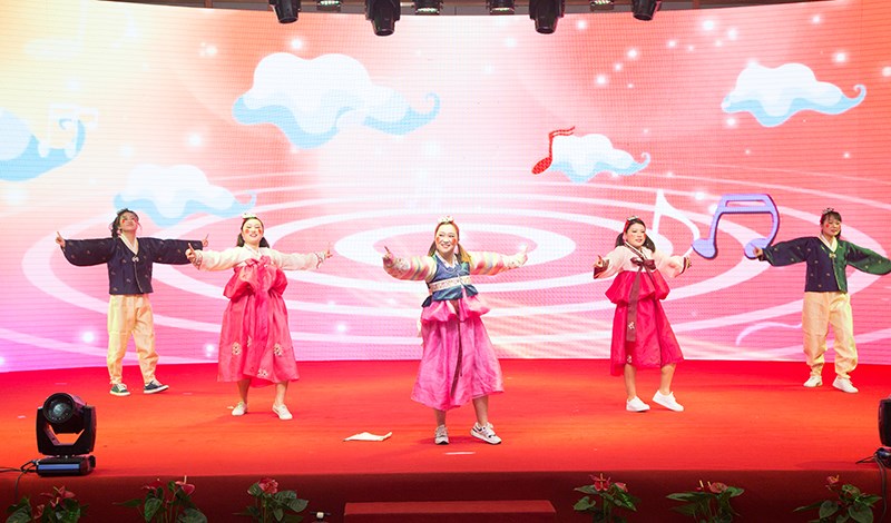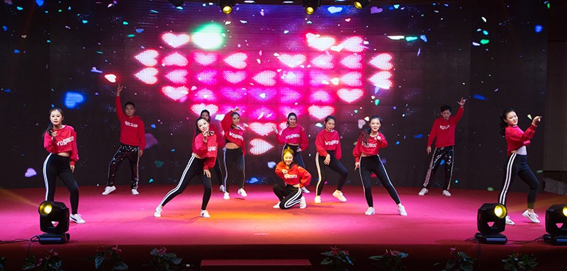 隨著動(dòng)感的音樂(lè),開(kāi)場(chǎng)舞《Sugar》熱血豪邁、活力十足,一開(kāi)場(chǎng)就引得全場(chǎng)矚目,贏得陣陣喝彩。五位主持人舞動(dòng)著節(jié)拍,閃耀登場(chǎng),在喜慶歡樂(lè)的氛圍中拉開(kāi)了晚會(huì)的帷幕。