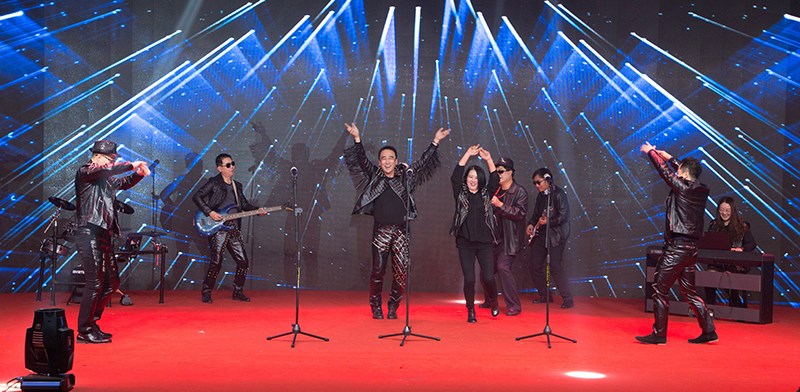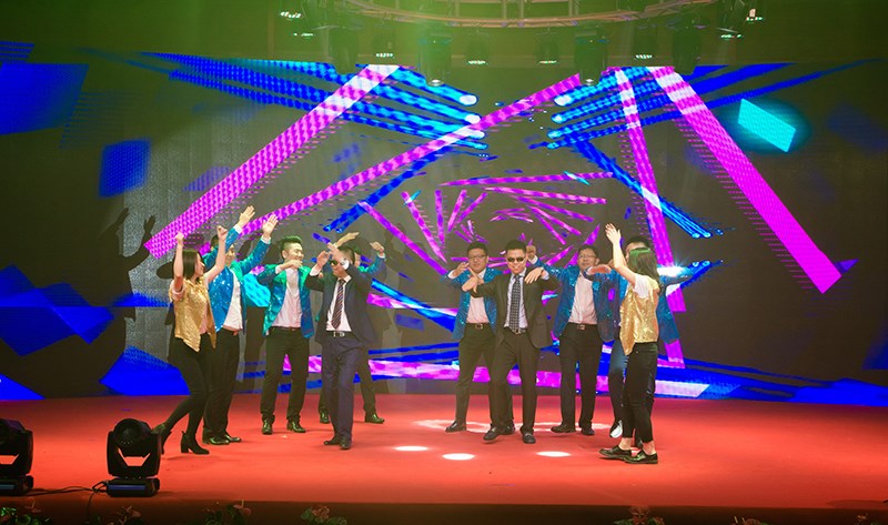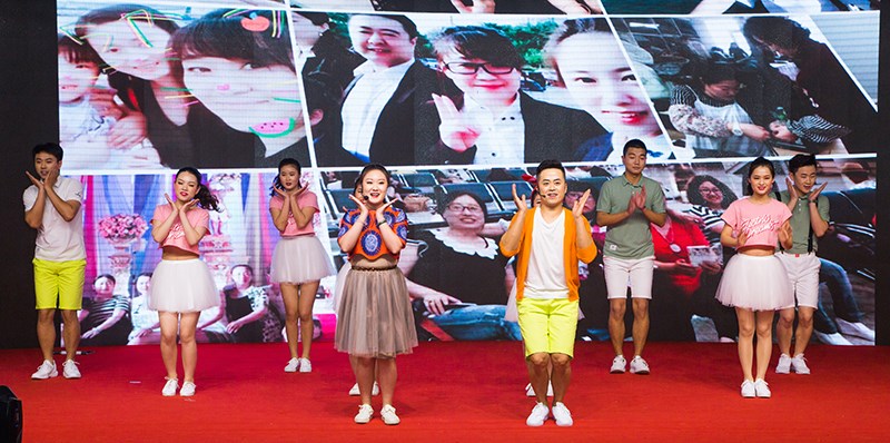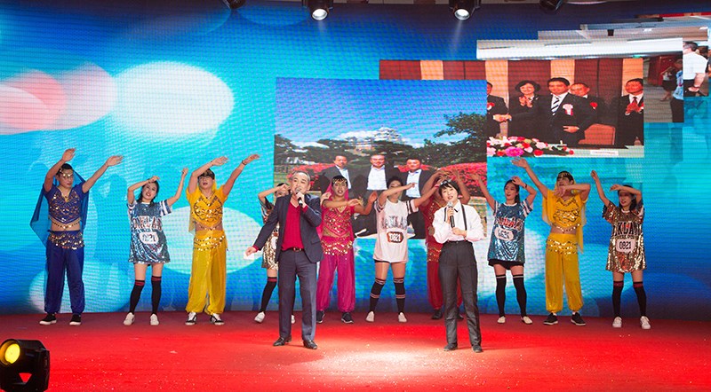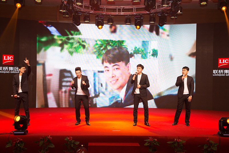 一開(kāi)場(chǎng),歌曲《我們不一樣》就點(diǎn)燃了全場(chǎng),來(lái)自集團(tuán)總部4名演唱者,略帶金屬質(zhì)感的嗓音,深情唱出集團(tuán)20年艱苦創(chuàng)業(yè)中,聯(lián)橋人不一樣的拼搏,不一樣的意志,不一樣的風(fēng)采,不一樣的兄弟情。尤其是當(dāng)1500名聯(lián)橋人揮舞著旗幟拍攝全家福的壯觀畫(huà)面呈現(xiàn)時(shí),身為聯(lián)橋人的驕傲和自豪感油然而生。紡織服裝行業(yè)的情景劇《感覺(jué)自己棒棒噠》,表演輕松愉悅、風(fēng)趣幽默,歌聲傳達(dá)出紡織服裝行業(yè)的美女們,在緊張工作之中保持飽滿的精神狀態(tài)和積極樂(lè)觀的心態(tài),更表現(xiàn)著聯(lián)橋人追逐時(shí)尚,逐鹿世界秀場(chǎng)的風(fēng)采。塑料新材行業(yè)的歌曲《驕傲的少年》青春洋溢,4名帥氣小伙子的堅(jiān)定歌聲,展現(xiàn)了他們開(kāi)拓進(jìn)取的精神。人力資源行業(yè)帶來(lái)的歌伴舞《天邊》,用渾厚的聲音,闡述著追逐夢(mèng)想、勇攀高峰的精神;行業(yè)部長(zhǎng)們用“聯(lián)橋老兵”精神演繹了《新長(zhǎng)征路上的搖滾》,盡顯搖滾的力量,撕裂的吶喊,縱情的釋放,給人以心靈的震撼。在歌舞串燒《蹦沙卡拉卡》中,來(lái)自日本上市人力資源公司的CEO松本先生驚喜亮相,用一首《朋友》講述著與聯(lián)橋人的長(zhǎng)久友誼。