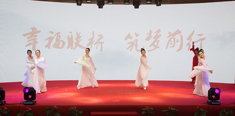 總部的古典舞《采薇》大有漢唐樂(lè)舞“翹袖折腰”的舞姿形象,古典韻味十足又有聯(lián)橋賦予的時(shí)代新創(chuàng)意;紡織服裝行業(yè)的墨舞《筑夢(mèng)聯(lián)橋》也是如此,把舞、樂(lè)、書(shū)、畫(huà)熔于一爐,在情景交融、人屏互動(dòng)中,“幸福聯(lián)橋 筑夢(mèng)前行”八個(gè)大字躍然眼前,當(dāng)“聯(lián)橋集團(tuán)明天更美好”出現(xiàn)在屏幕上時(shí),現(xiàn)場(chǎng)掌聲雷動(dòng)。