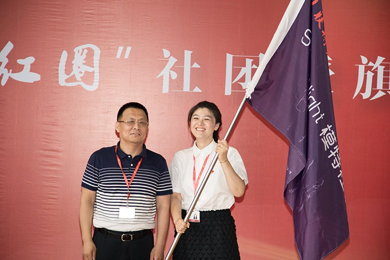 下午3點,授旗儀式正式開始。在歡快的音樂聲中,各名譽團(tuán)長分別為自己“代言”的社團(tuán)授旗。
