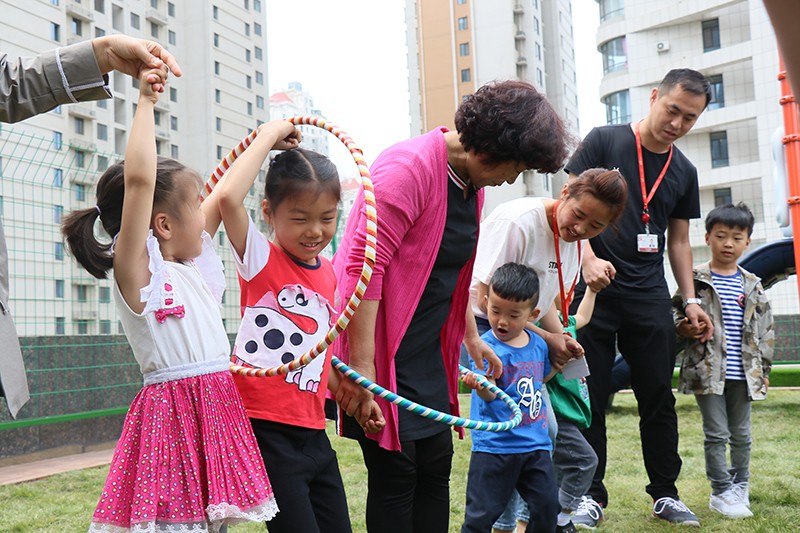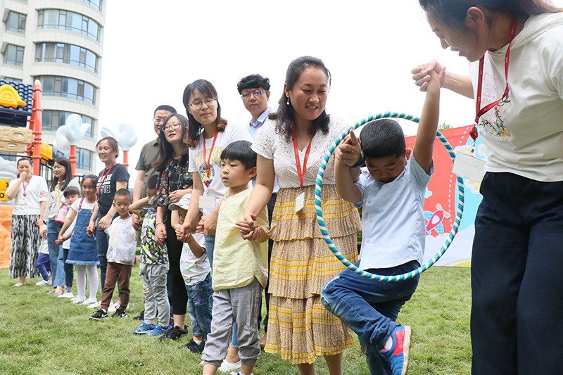 員工和孩子們手牽手站成兩列,分別傳遞呼啦圈。爸媽耐心為孩子們講解規(guī)則,孩子們幫著爸媽提高傳遞速度。這傳遞的不是呼啦圈,而是快樂和溫暖呀。