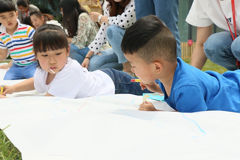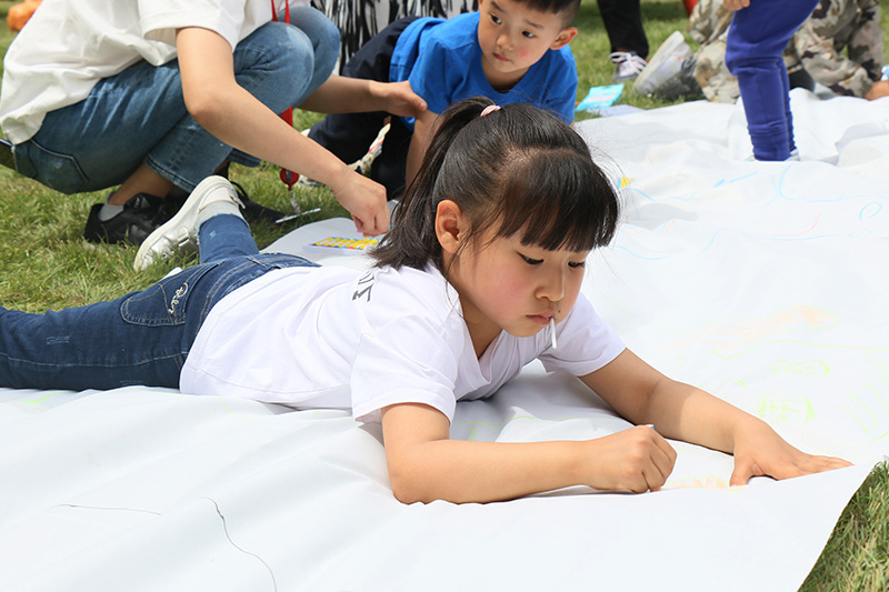考驗(yàn)美術(shù)天賦的時(shí)候到啦!孩子們躺在畫布上,爸媽拿起畫筆,認(rèn)真描繪著孩子的模樣。你看,五顏六色的畫筆,畫出了一個(gè)多姿多彩的童年。
