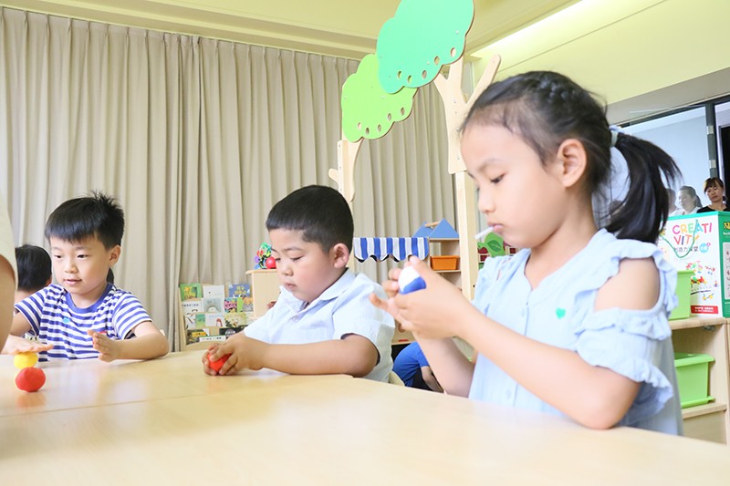 隨后,兩名老師帶領(lǐng)孩子們進(jìn)行了體驗(yàn)課。在老師的示范引領(lǐng)下,孩子們手中的橡皮泥,變成了一個(gè)個(gè)可愛的卡通形象。室內(nèi)孩子們玩得不亦樂乎,室外是家長(zhǎng)們溢滿幸福的笑臉。