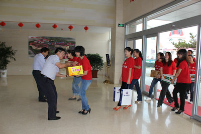 2012年9月27日下午,聯(lián)橋集團(tuán)愛心媽媽志愿者團(tuán)隊(duì)在集團(tuán)黨委副書記宋威麗的帶領(lǐng)下,前往威海兒童福利院,給孩子們送去150箱愛心水果和一些生活用品,送去了節(jié)日的問候和深切的關(guān)愛。威海市兒童福利院江海剛院長熱情接待了志愿者們。