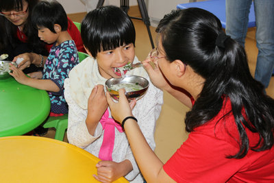 江院長給志愿者們介紹了福利院的概況,目前福利院共收留孤兒、棄嬰、棄兒一百多名。志愿者們參觀了康復(fù)中心,與醫(yī)護(hù)人員共同為腦癱和智障患兒進(jìn)行康復(fù)和矯形訓(xùn)練。然后到食堂給年幼的孩子喂食進(jìn)餐,陪孩子們到游戲室進(jìn)行鍛煉。在這里,志愿者們看望了很多招人愛、惹人憐的孩子,經(jīng)工作人員介紹才知道他們或者聽不到、或者手有缺陷、或者平衡力不行,很多都有缺陷,但是他們看到各位阿姨的到來,都分外活躍,高興地到處擁抱各位阿姨,更讓志愿者們體會到了深深的責(zé)任。
