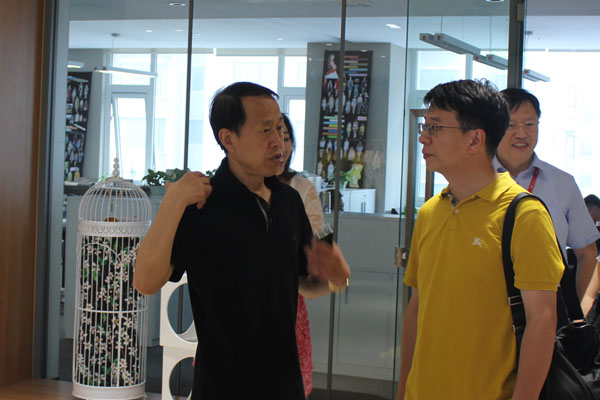 2015年6月13日,建設(shè)銀行威海市分行行長梅寧一行參觀考察聯(lián)橋集團,集團公司黨委書記、董事長慕镕鍵及相關(guān)工作人員陪同。