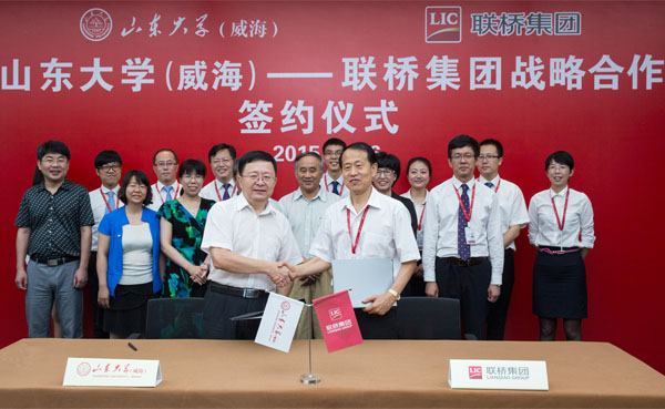 2015年7月16日,聯(lián)橋集團與山東大學(威海)戰(zhàn)略合作簽約儀式在聯(lián)橋集團舉行。山東大學(威海)黨委副書記趙玉璞和聯(lián)橋集團黨委書記、董事長慕镕鍵代表雙方簽署了戰(zhàn)略合作協(xié)議。全國政協(xié)常委、中國社會科學院學部委員、山東大學東北亞研究中心理事長張?zhí)N嶺教授、山東大學(威海)合作發(fā)展處副處長劉曉軍、山東大學(威海)科研處副處長吳玉閣,聯(lián)橋集團副總經理于福杰、副總經理慕雙舉、聯(lián)橋新材料副總經理李曉妹等領導出席儀式,簽約儀式由聯(lián)橋集團黨委副書記宋威麗主持。